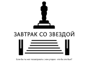 Завтрак со звездой - уникальный проект, аналогов которому нет во всем мире. Благодаря которому Вы можете позавтракать с любым медийным человеком а также сделать незабываемый подарок для своих близких. Позавтракать со своим кумиром - реально вместе с нами. Если бы ты мог позавтракать с кем угодно - кто бы это был?